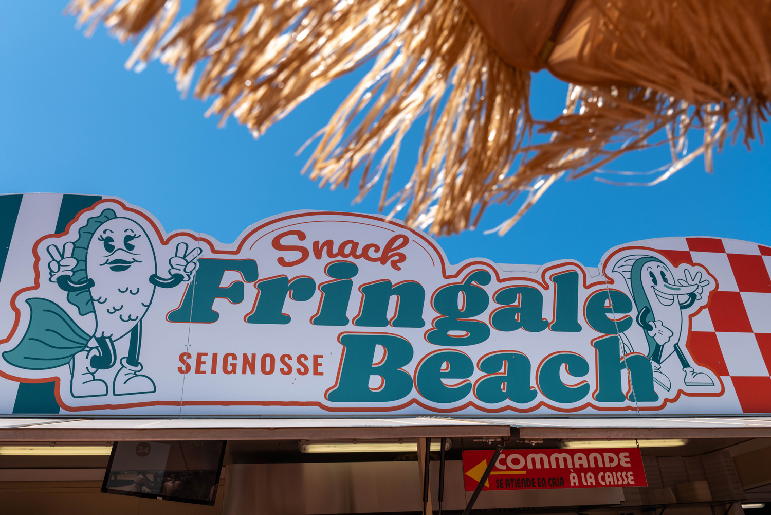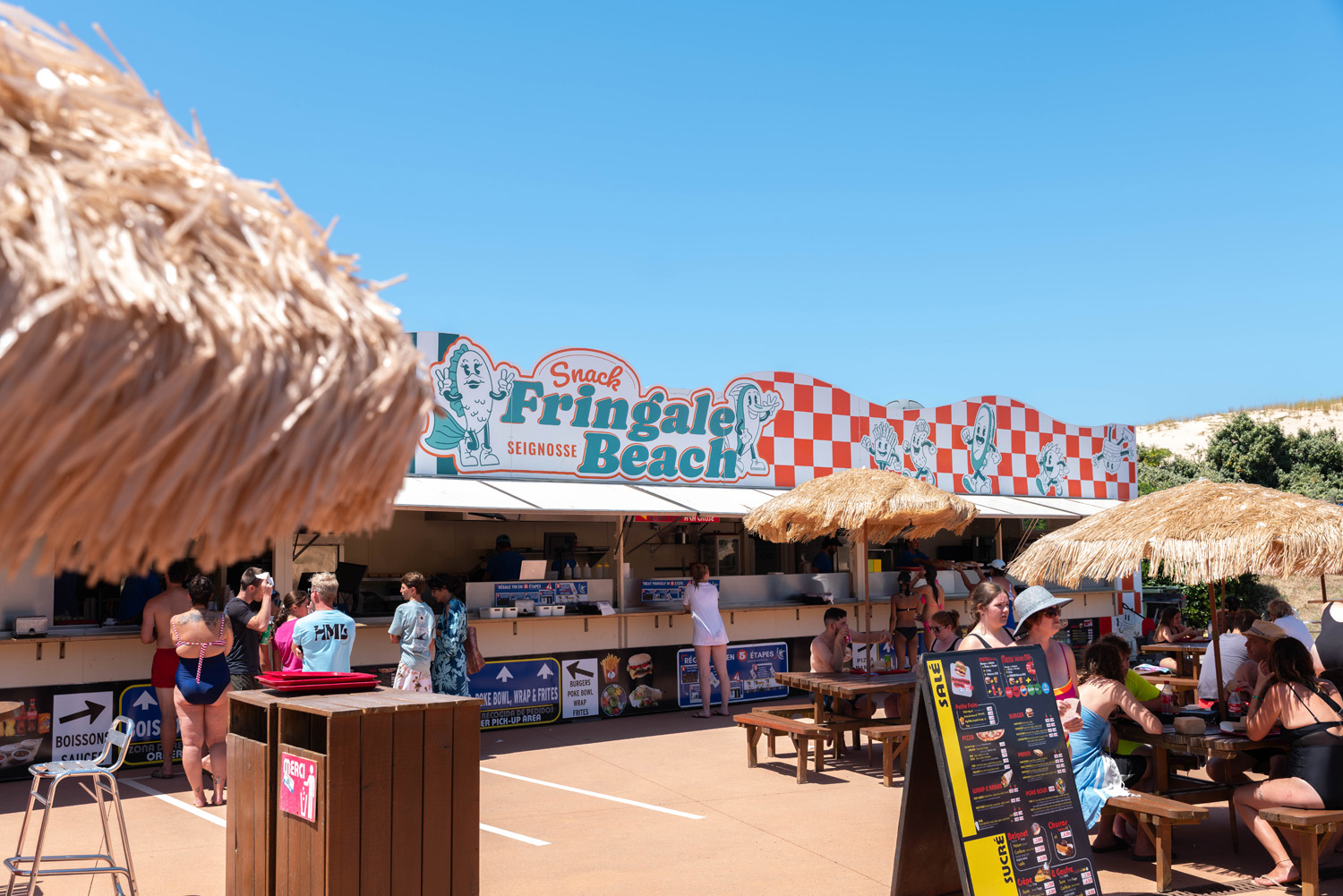 Été 2025 : nouvelle identité pour le fast-food du parc. Le Fringale Beach. Style américain friendly.